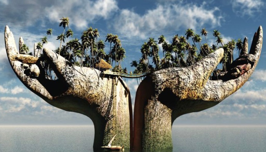 The Earth trembled as she lifted paradise in her hands made corporeal from the polluted crust of her mantle, to hold high in the sky, where the cancer of man could not reach it.